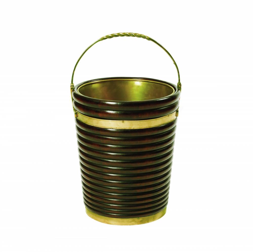 Irish Georgian style brass bound mahogany turf or peat bucket with tapered and ribbed sides.