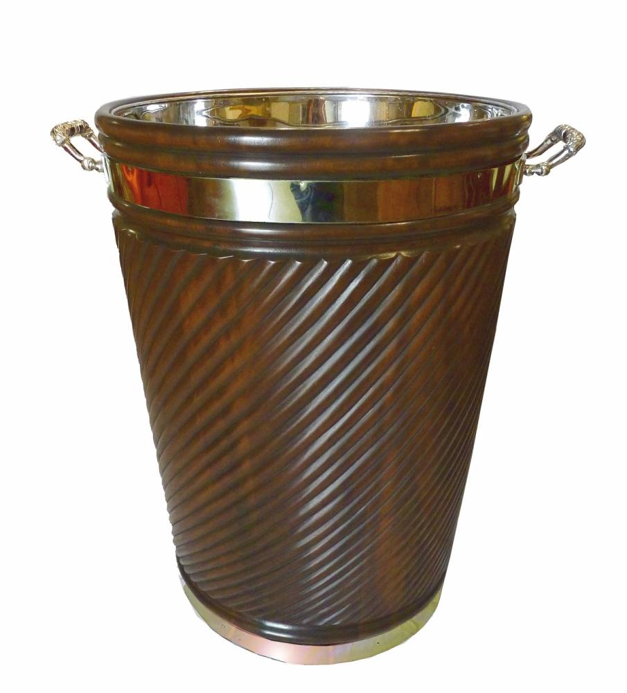 A monumental brass bound, mahogany, Irish Georgian style turf/peat bucket fitted with a brass removable liner. The spiral moulded sides and brass cast carrying handles being a distinctive feature of Irish furniture.