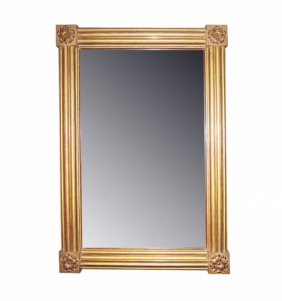 A Regency giltwood overmantel mirror with fluted columns, united by corner blocks and applied carved paterae.