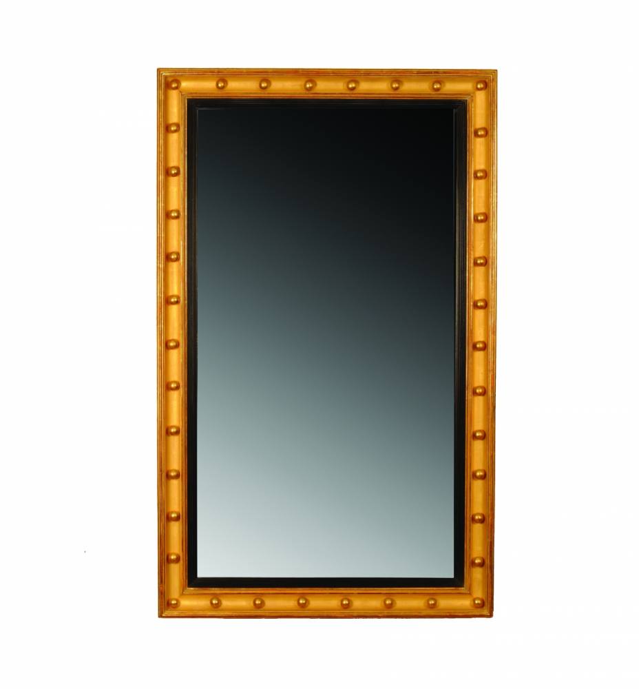 A Regency pier glass mirror with ball decoration contained within a reeded frame and black slip.