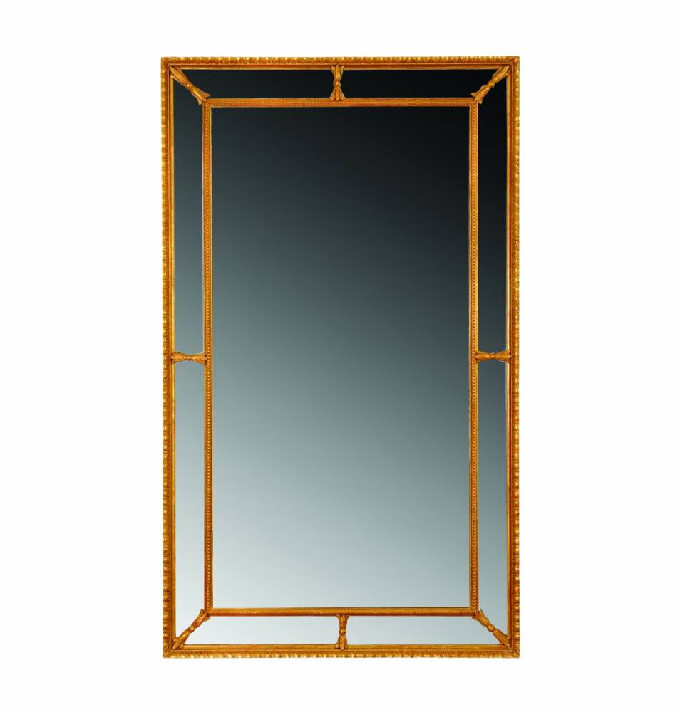 An Adam border glass with outer leaf moulding and beaded inner frame, stylised lotus leaf connects the frames.