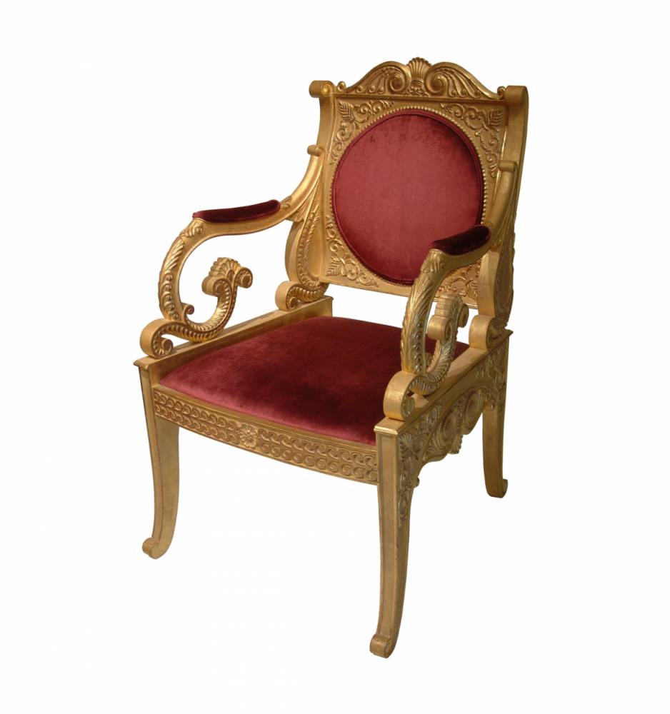 This ornately carved and gilded superior armchair is modelled on one of the Russian Tzar chairs in St. Petersburg's Hermitage museum.